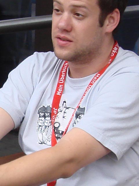 Wolfgang im Andenken an das Webzine 2005 Treffen, Martin in einem limited edition Retrogame-Polo von Chunk und Hannes in einem ziemlich Energie geladenen Teil, dessen Herkunft mir leider verborgen blieb. Und mein Barcamp Shirt werde ich mir sicher aufheben, nur mit diesem hochgeschlossenen Männer-Ausschnitt muss ich was machen…